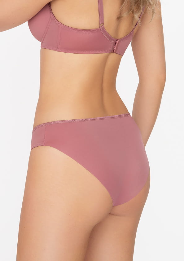 Gładkie figi o klasycznym kroju z kolekcji Virginia od firmy Corin. Wykonane z miękkiej i przyjemnej dla ciała dzianiny. Zapewniają komfort użytkowania, nie uciskają ani nie rolują się. Pas oraz przód fig wykończony delikatną, płaską gumeczką. Tył zakrywający pośladki, cięty laserowo, dzięki czemu przylegają idealnie do pośladków, nie odznaczają się pod obcisłym ubraniem. W kroku wszyta bawełniana wkładka dla większego komfortu użytkowania. Wysokość poniżej pępka. Model jak na zdjęciu, w odcieniu rose portofino.