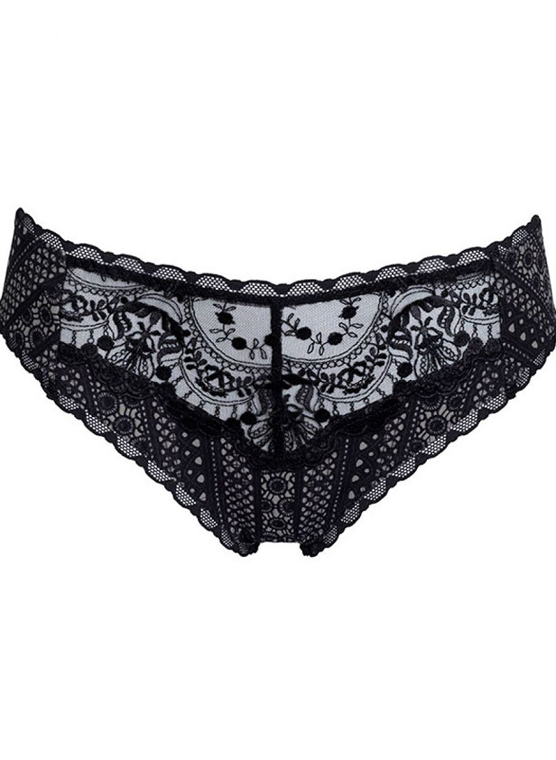 Eleganckie figi z kolekcji Keira od firmy Dalia. Figi o klasycznym kroju, zasłaniającym pośladki. Wykonane z przyjaznej ciału i oddychającej mikrofibry ozdobionej wzorem. Przednia część fig dodatkowo zdobione eleganckim haftem z motywem roślinnym. Kroczek wykończony od wewnątrz bawełnianą wkładką dla lepszego komfortu użytkowania. Nogawki oraz pas wykończone delikatną, koronkową gumeczką. Model w kolorze czarno-popielatym-jak na zdjęciu. Do kompletu biustonosz semi-soft.