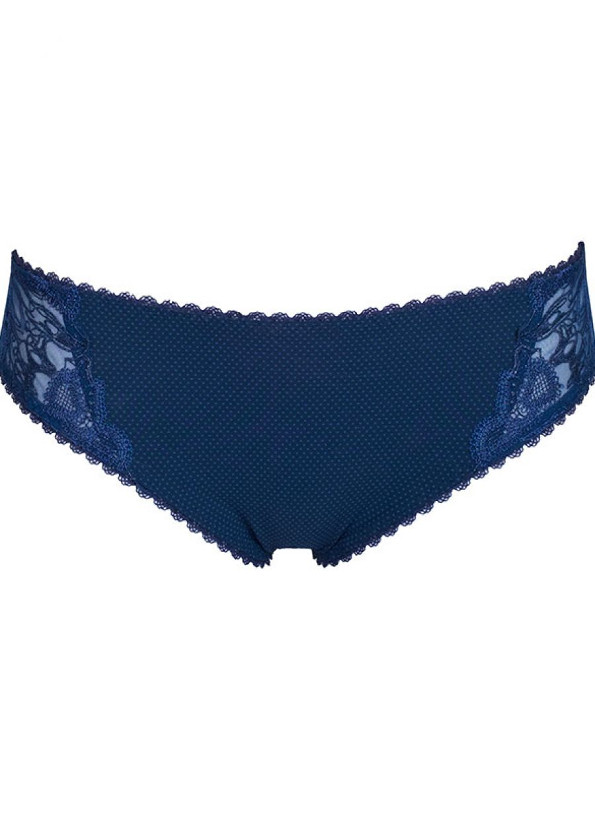 Eleganckie figi z kolekcji Mila od firmy Dalia. Figi o klasycznym kroju, zasłaniającym pośladki. Wykonane z przyjaznej ciału i oddychającej mikrofibry w delikatne kropeczki. Dodatkowo zdobione eleganckim haftem z dodatkiem posrebrzanej nitki. Kroczek wykończony od wewnątrz bawełnianą wkładką dla lepszego komfortu użytkowania. Model w kolorze granatowym-jak na zdjęciu. Do kompletu biustonosz semi-soft.
