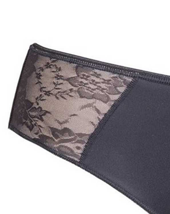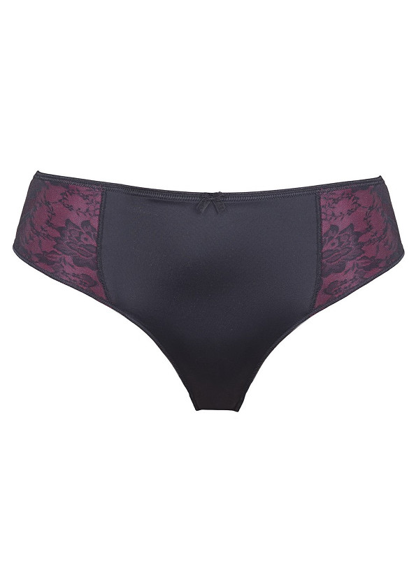 Figi Glamour od firmy Lemax to klasyczne figi wykonane z gładkiej i elastycznej dzianiny. Po bokach wstawiony żakardowy, elastyczny tiul z motywem kwiatowym podszyty od wewnątrz dzianiną (bordowym lub beżowym). Tył gładki zasłaniający pośladki, obszyty delikatną gumeczką. Klin podszyty bawełnianą wkładką.