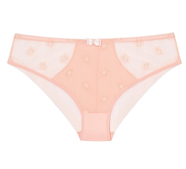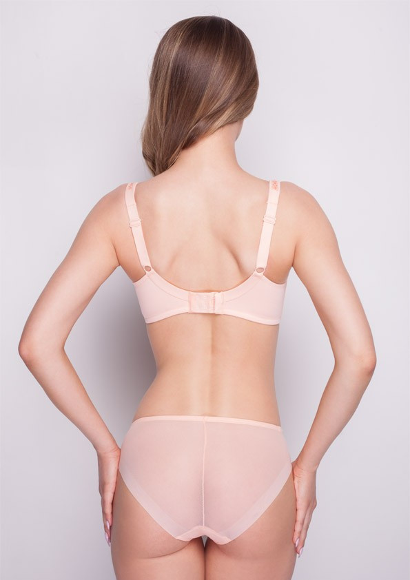 Figi wyższe, pełne, idealne dla Pań ceniących wygodę i klasykę od polskiej firmy Samanta. Przód wykonany z delikatnego tiulu z haftowanymi kwiatuszkami. Środek podszyty od wewnątrz dodatkową siateczką. W pasie wykończone gładką gumeczką. Na środku dwukolorowa kokardka. Tył wykonany z siateczki zakończonej bezszwowo, dzięki czemu nie odznacza się pod ubraniem. Klin od wewnątrz wykończony bawełną. Model w kolorze jak na zdjęciu-brzoskwiniowym.