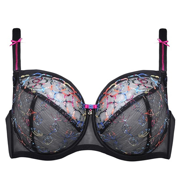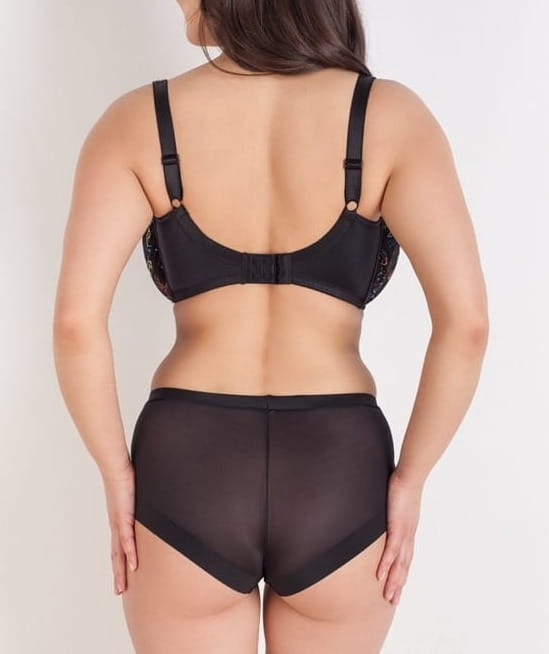 Elegancki biustonosz miękki z fiszbinami od polskiej firmy Samanta. Model przeznaczony dla Pań z obfitym biustem. Głęboka miseczka, zakrywająca 90% biustu. Zbiera, zaokrągla i naturalnie eksponuje biust. Idealne dodatkowe podtrzymanie zapewnia boczna fiszbina. Miseczki z delikatnego tiulu ozdobione kolorowym haftem (jak na zdjęciu).