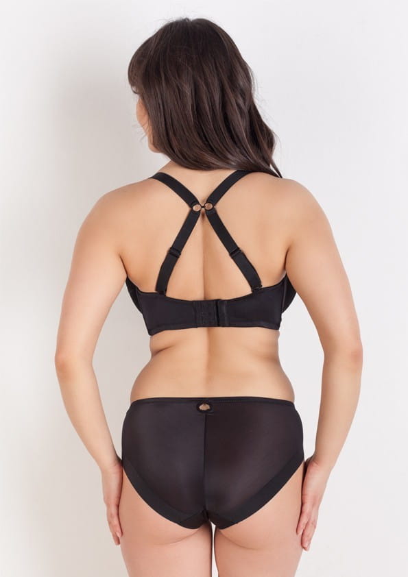 Piękny biustonosz Midnight A925 to model biustonosza przeznaczony dla Pań z większym i/lub mniej jędrnym biustem. Głęboka miska, zakrywająca 90% biustu, a także wzmocnienie dolnej części miski pianką zapewniają stabilne podtrzymanie. Biustonosz zbiera, zaokrągla i naturalnie eksponuje biust. Miska wykonana z haftu i plenu stabilnego oraz pianki wyściełanej od wewnątrz bawełną. Ramiączka odpinane, ozdobione taśmą haftowaną, podszyte pianką. Ramiączka posiadają z tyłu zapięcie w formie bokserki. Tył i środek z miękkiej dzianiny. Tył prosty, idealny do odkrytych kreacji. Całość wykończona gładką gumą obszywkową. Biustonosz zdobiony kokardką na środku. Do kompletu figi Midnight M300 (tanga) i Midnight B400 (midi).