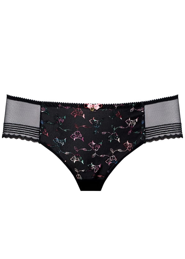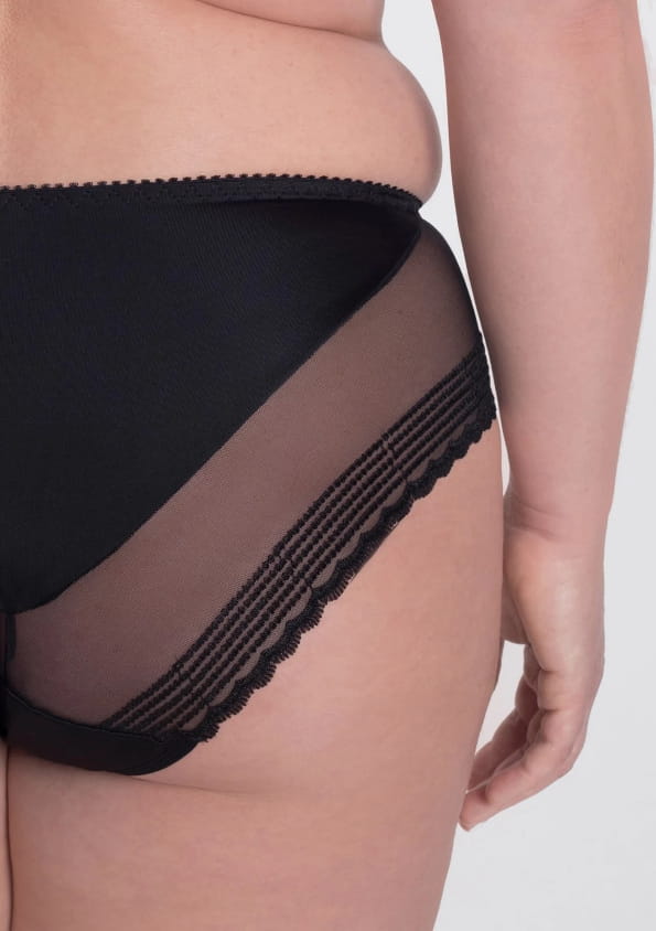 Figi typu midi o wysokości poniżej pępka, zasłaniają biodra oraz pośladki. Idealne dla kobiet ceniących wygodę oraz lubiących klasyczne kroje. Figi Roja to połączenie elastycznej, miękkiej siateczki z kwiatowym haftem oraz koronką. Przód fig wzmocniony od wewnątrz dodatkową siateczką. Z zewnątrz ozdobione szwajcarskim haftem z motywem florystycznym. W pasie wszyta delikatna gumeczka z kokardką i biżuterią na środku. Tył z gładkiej dzianiny, zewnętrzna część prześwitująca wykończona bezszwowo-haftem. W kroku od wewnątrz wszyta 100% bawełniana wkładka dla większego komfortu użytkowania. Model jak na zdjęciu w kolorze czarnym. Do kompletu biustonosz Roja A122 oraz Roja A922.