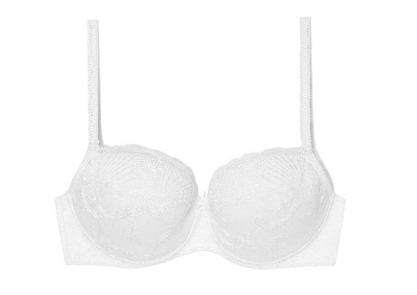 Elegancki, koronkowy biustonosz typu push-up dedykowany Paniom z większym oraz mniej jędrnym biustem. Idealny dla kobiet po okresie karmienia. Zaokrągla, podnosi i zbiera biust do dekoltu, zapewniając stabilne podtrzymanie i wysoki komfort noszenia. Miseczki usztywnione pianką, podszyte od wewnątrz bawełną z kieszonką na wkładkę-dołączonymi do biustonosza. Tył wykonany z miękkiej dzianiny, środek ze stabilnego plenu. Ramiączka ozdobione haftowaną taśmą, odpinane, regulowane z tyłu.