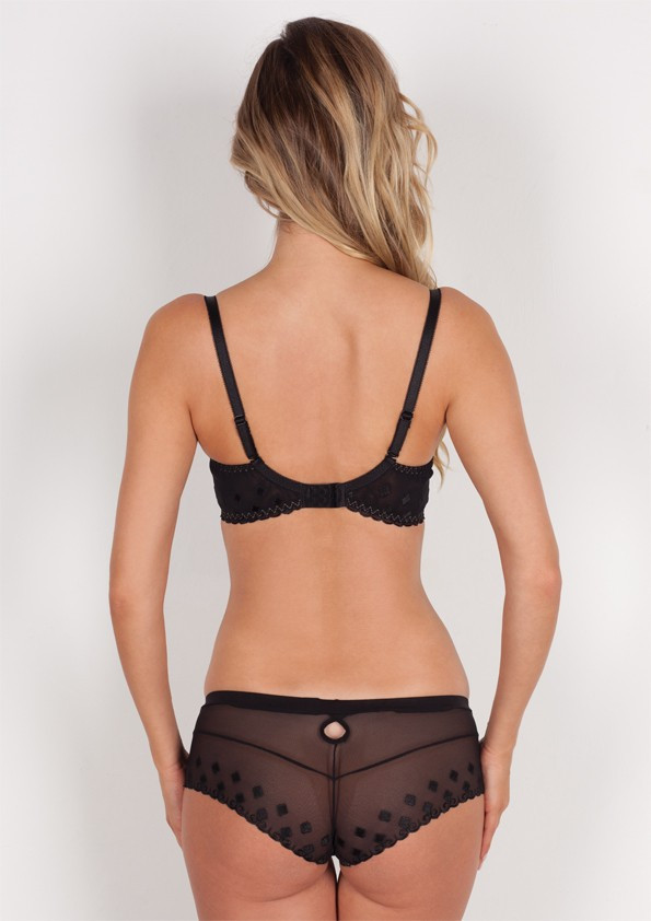 Piękny, haftowany biustonosz miękki na fiszbinach od firmy Samanta. Model podnoszący i zbierający biust. Zapewnia duży komfort użytkowania, dzięki bocznym wzmocnieniom daje jeszcze większe poczucie stabilności. Miseczki wykonane ze stabilnego haftu i plenu. Motyw kwiatowy w odcieniach złota, wypełniony czarną nicią z domieszką srebra. Ramiączka ozdobione satynową tasiemką oraz kokardką, odpinane, regulowane z tyłu. Między miseczkami ozdobna, złota kokardka. Model w kolorze czarnym-jak na zdjęciu. Do kompletu figi tanga M300 oraz klasyczne B400.